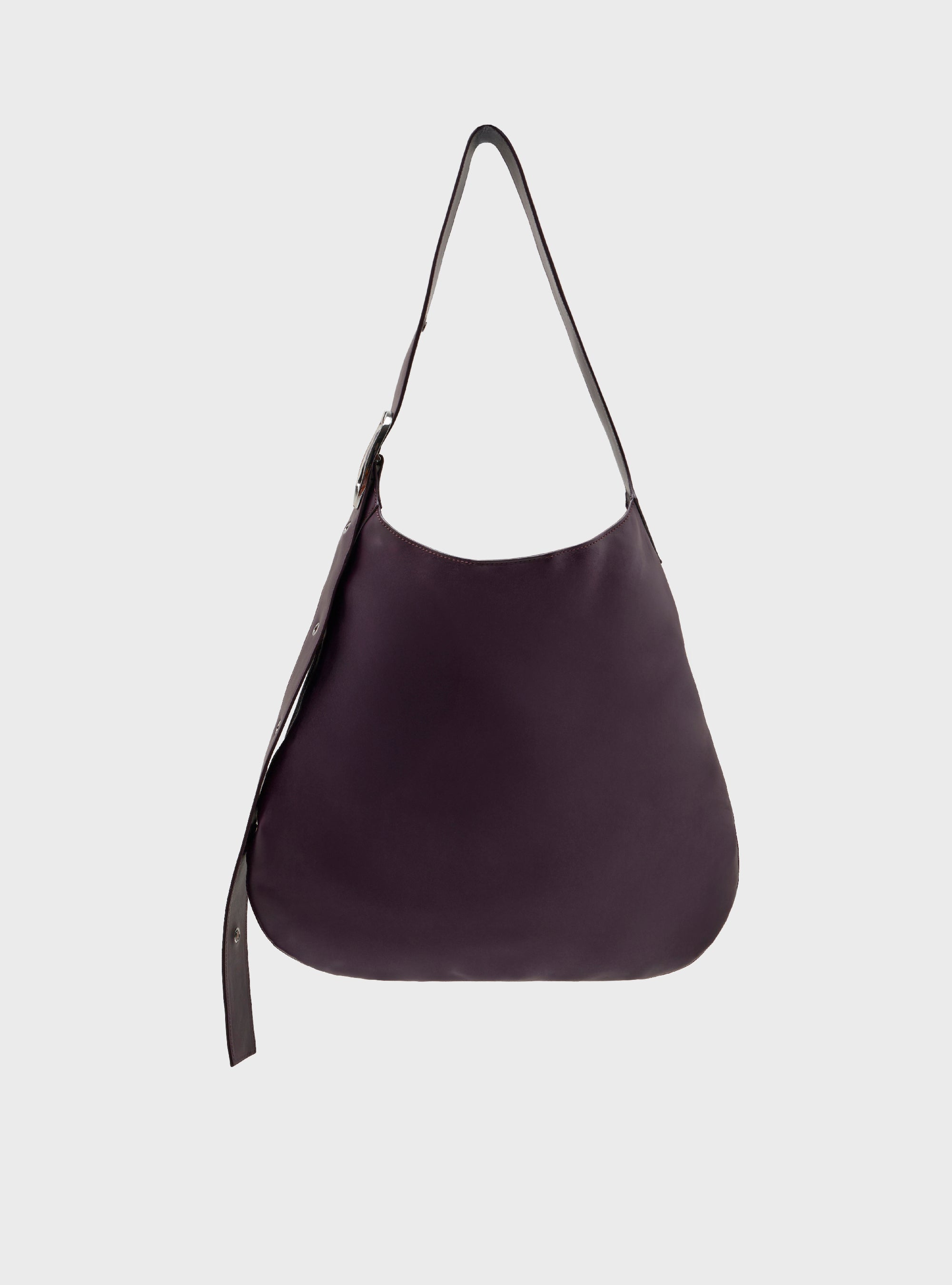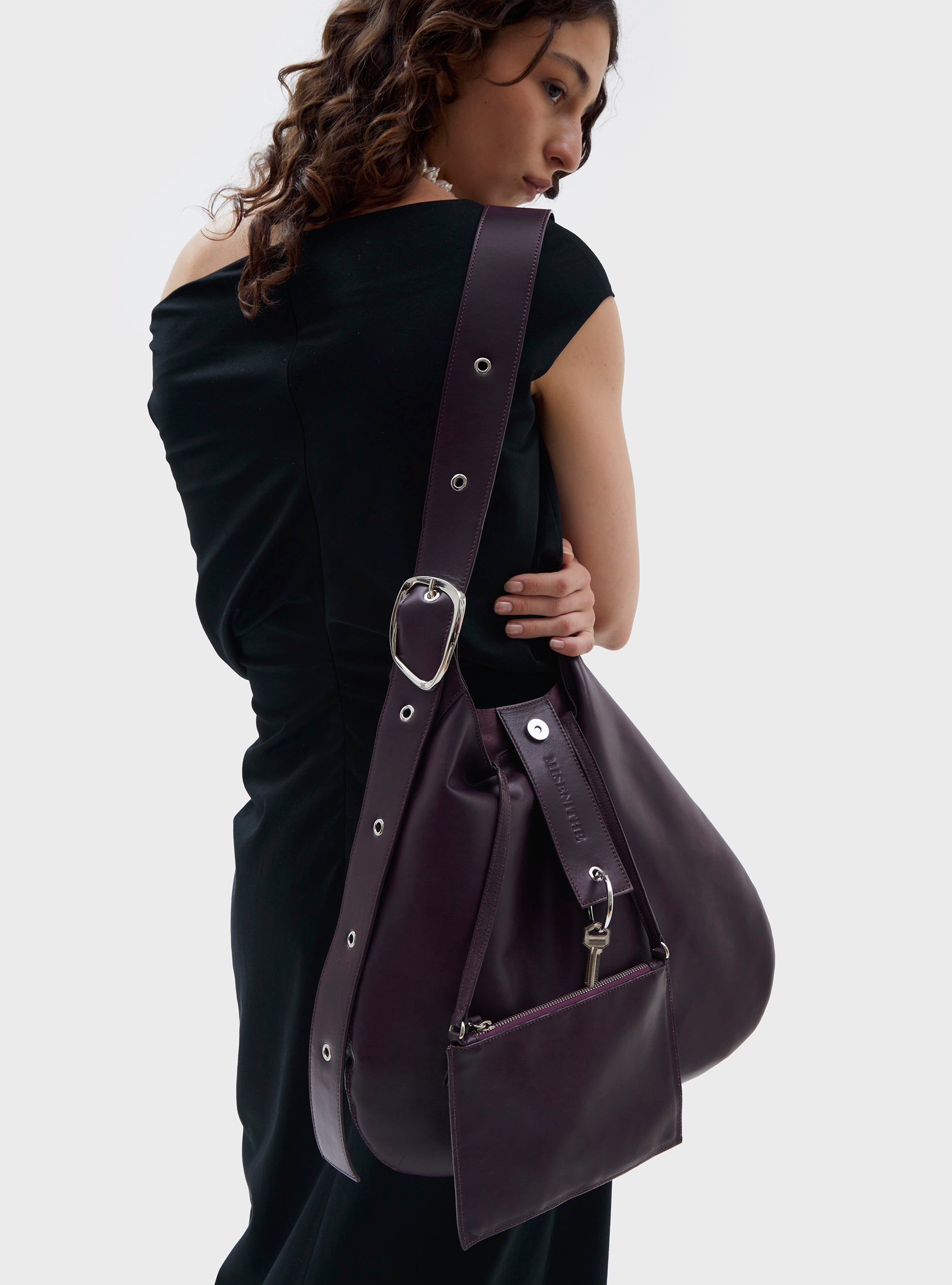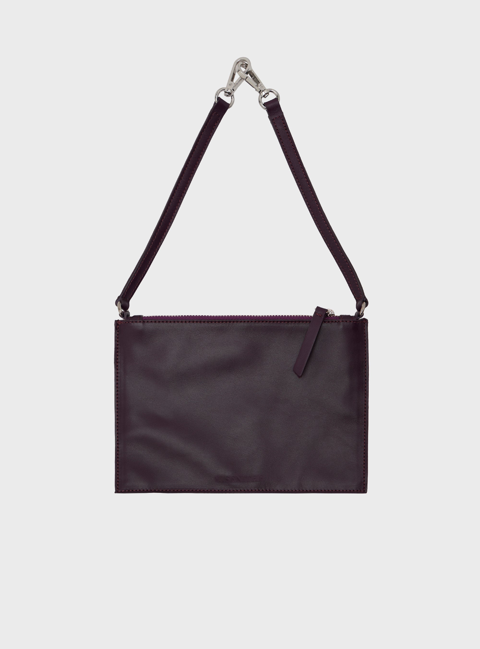 Large bag in plum calf leather. Removable inner pouch that can be used separately.