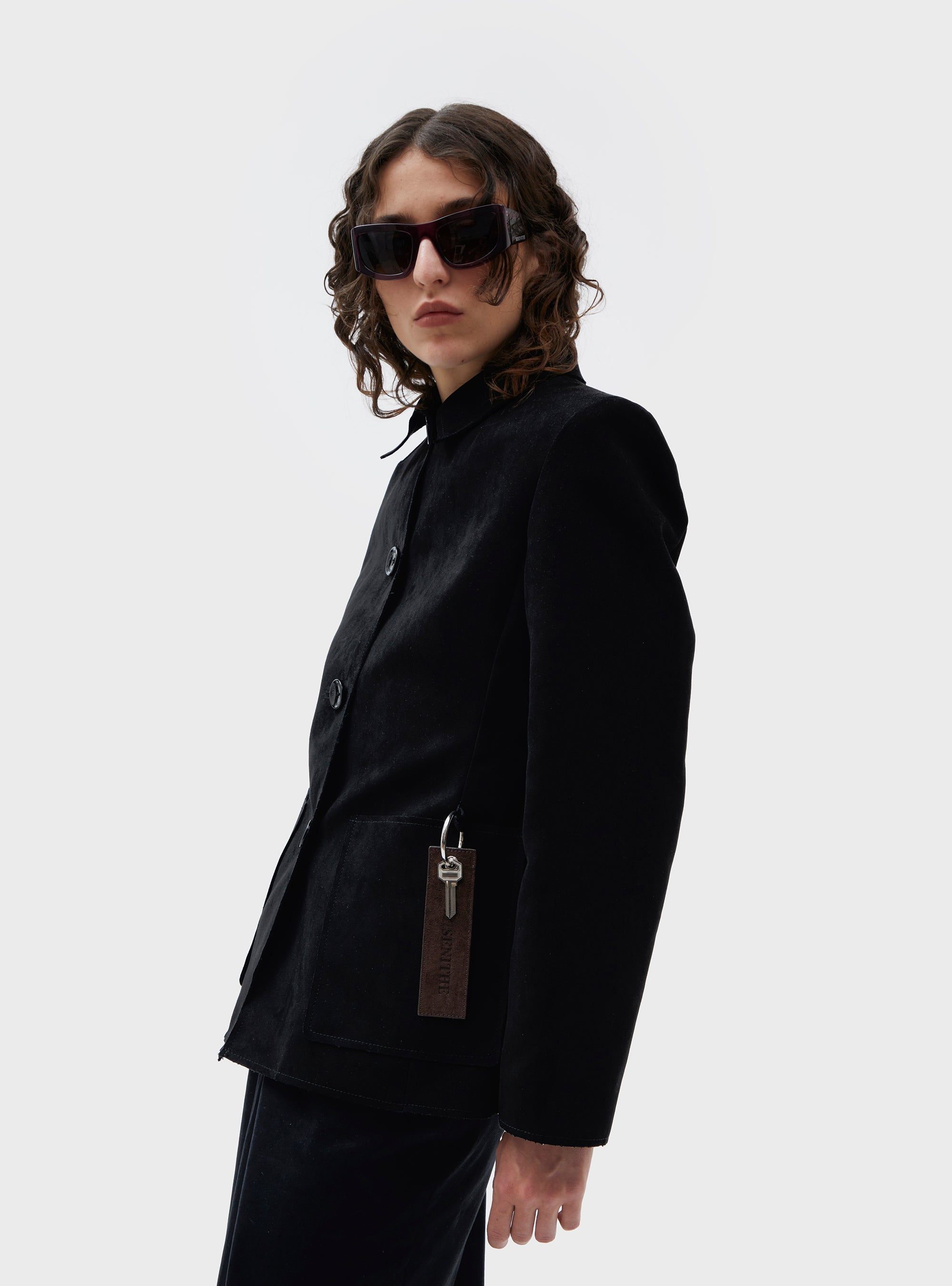 Keychain in mud calf leather. With embossed logo. Metal logo tag.