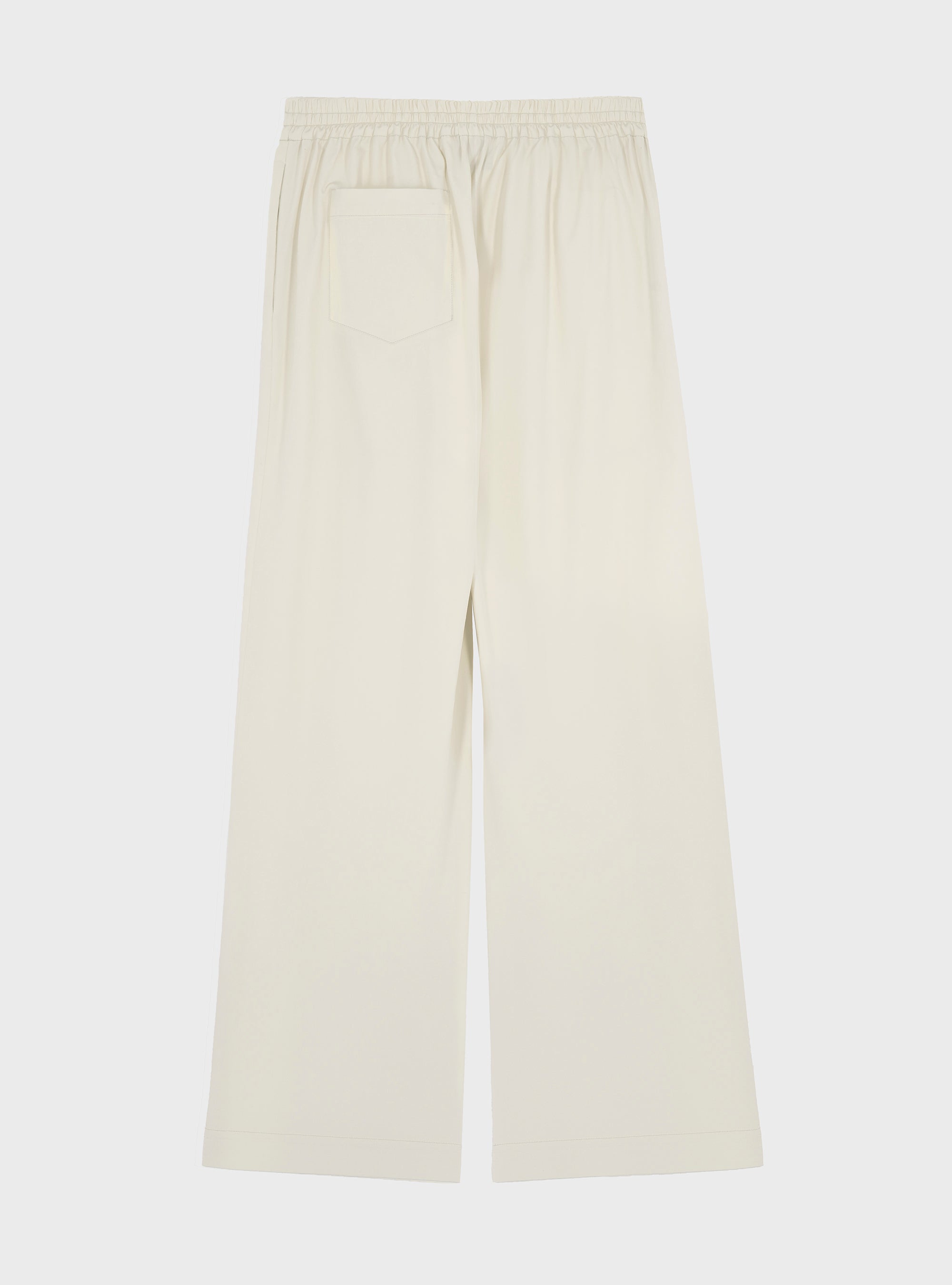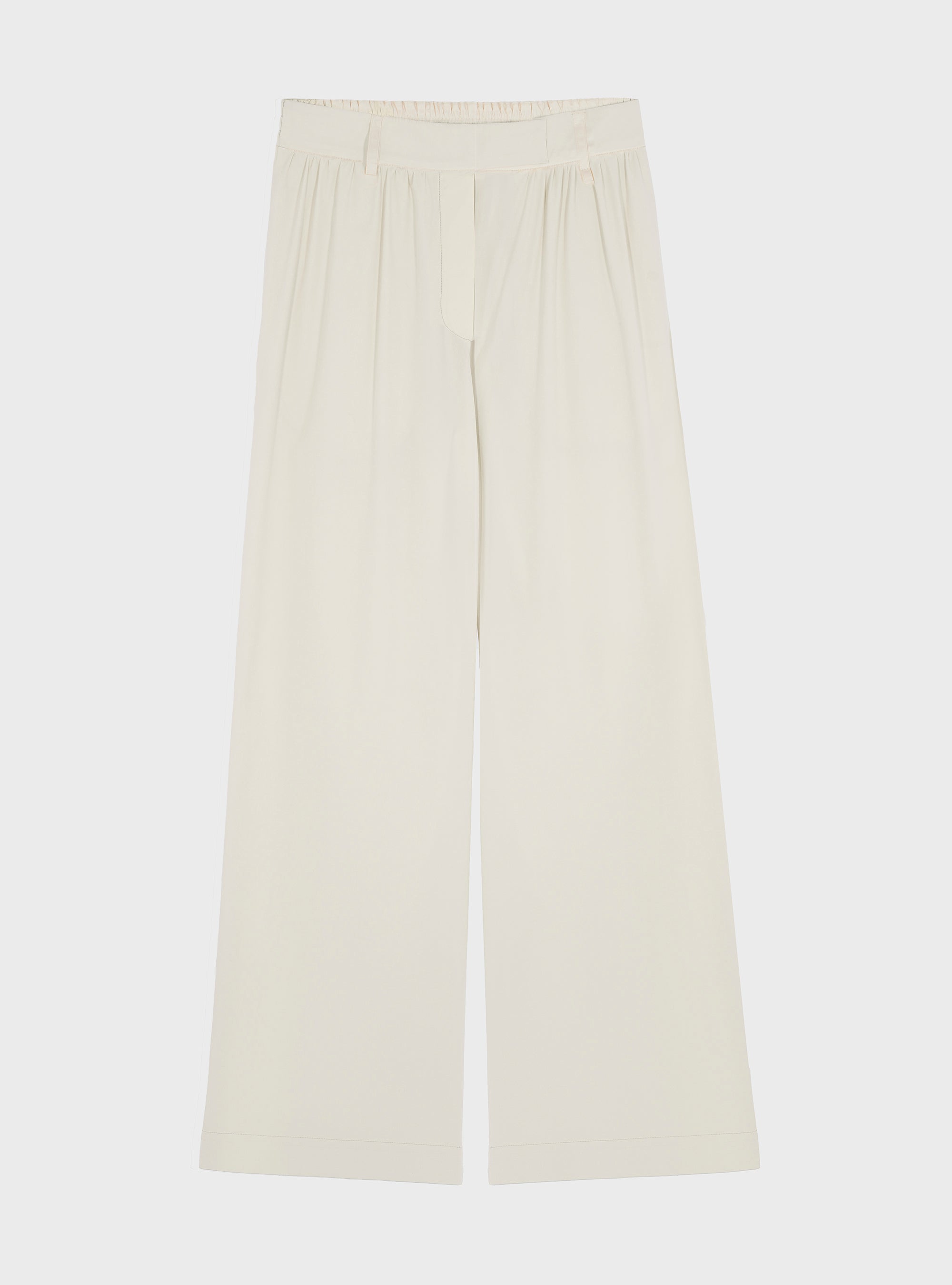 Poplin trousers. With elasticated waist and faux tailored trouser closure. Poplin gives the garment a fresh feel.