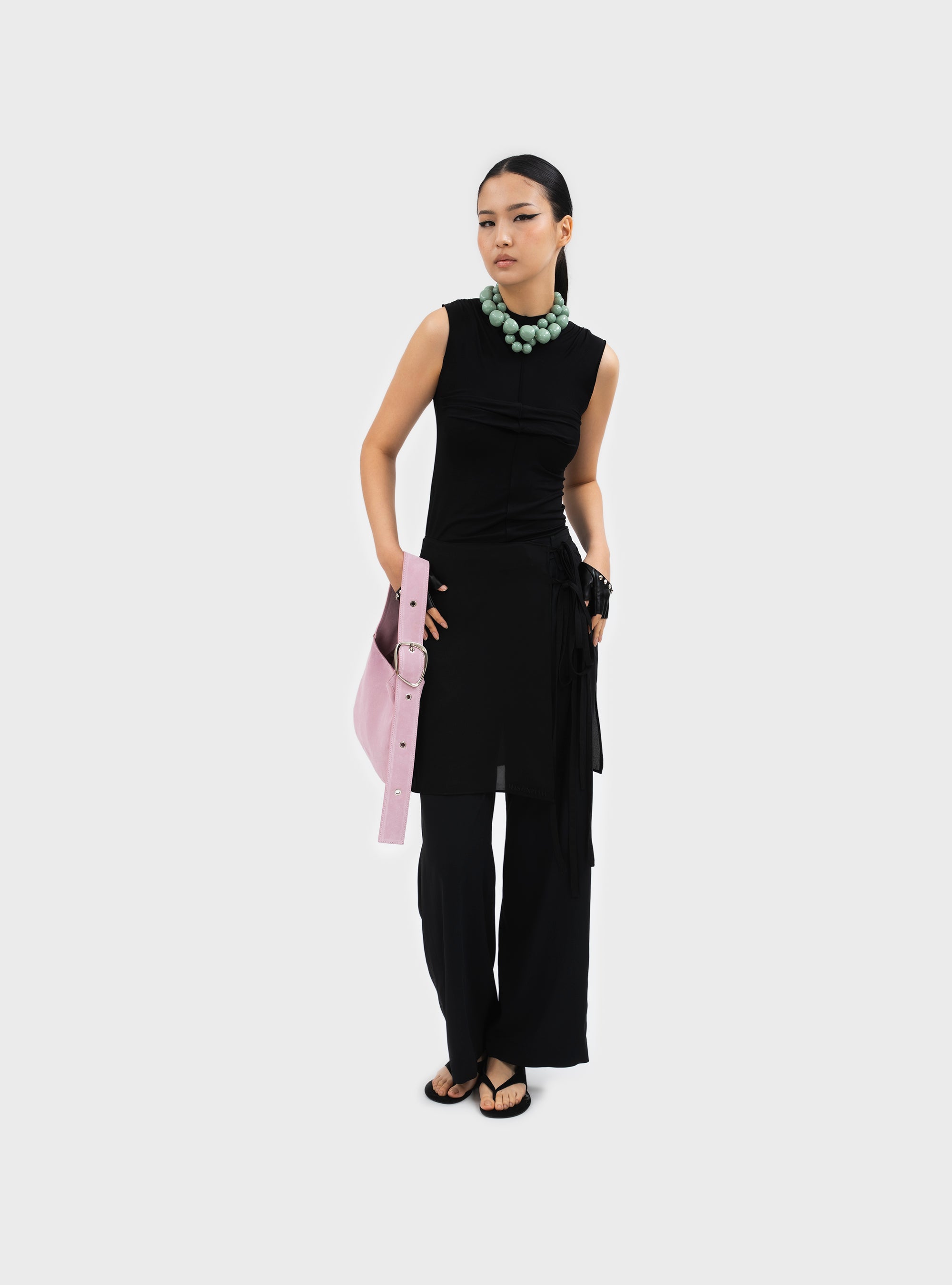 Pareo fluido in crepe de chine. Con lacci. Il crepe de chine dona al capo fluidità e comfort.