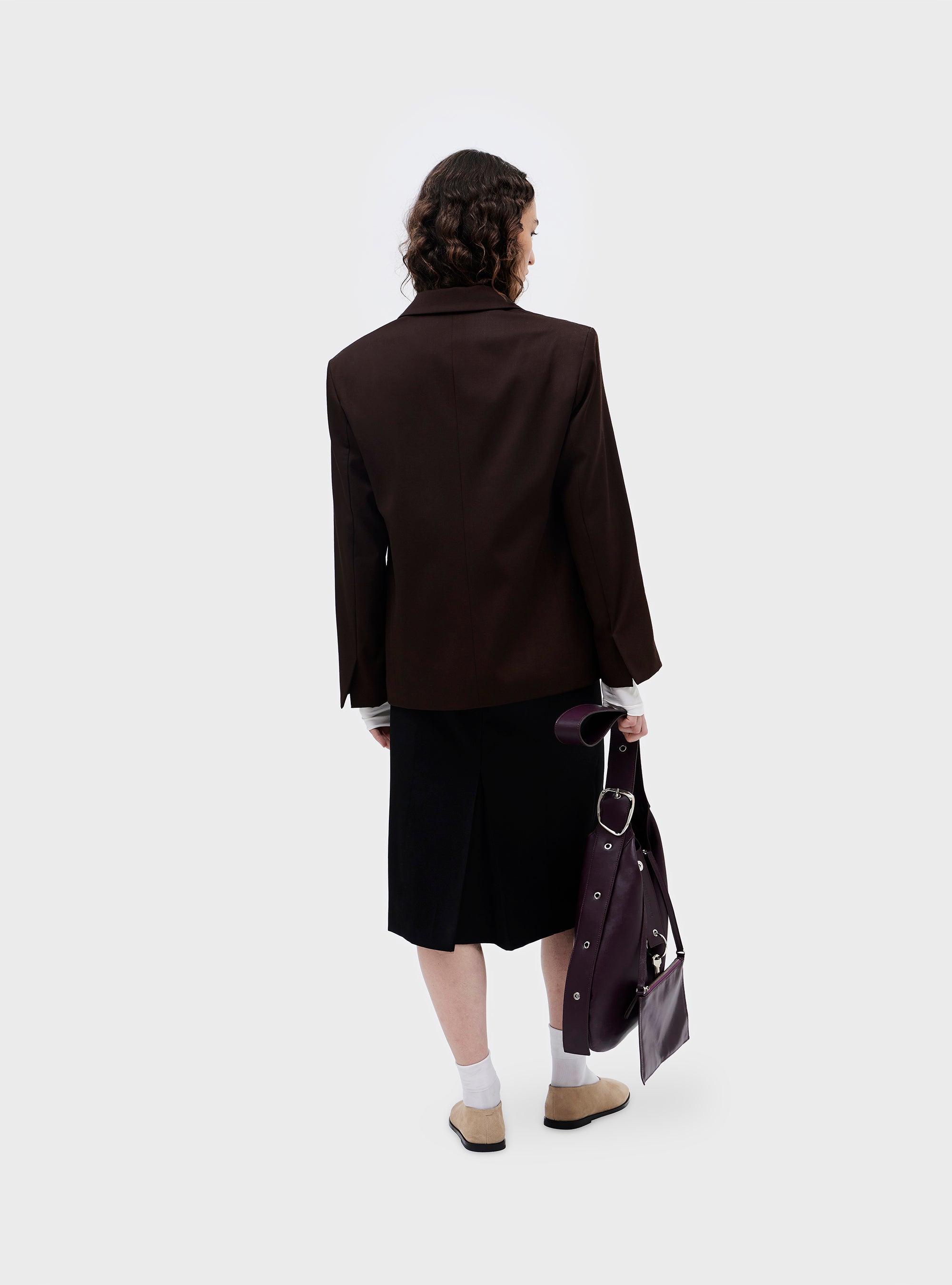 Blazer doppio petto oversize in puro fresco lana. Con spalla leggermente strutturata. Il blazer è foderato. Tasche esterne ad aletta, e tasca interna. Il fresco lana dona al capo una texture uniforme, morbida e leggera al tatto.