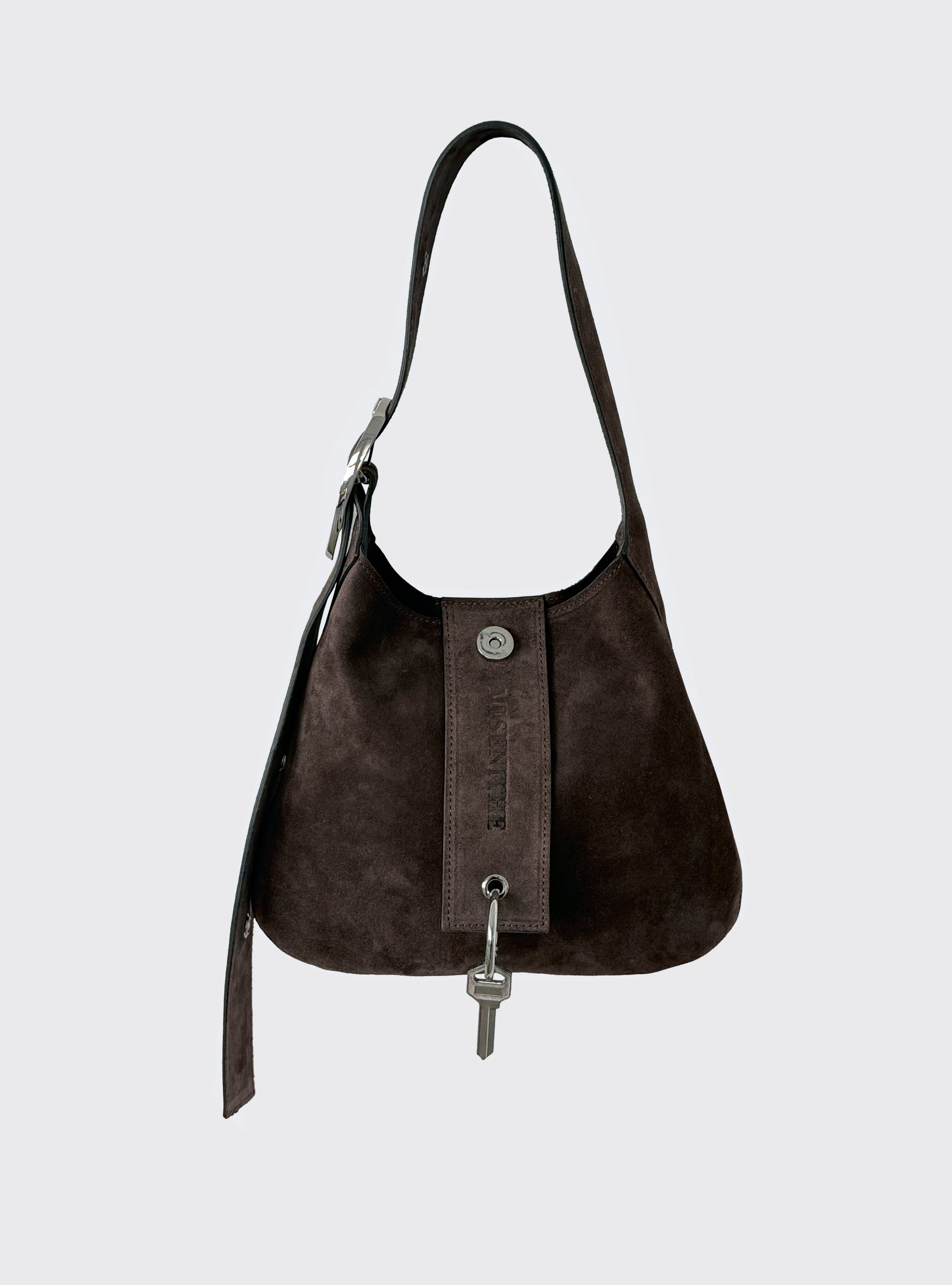 Borsa piccola in pelle di vitello scamosciata fango.