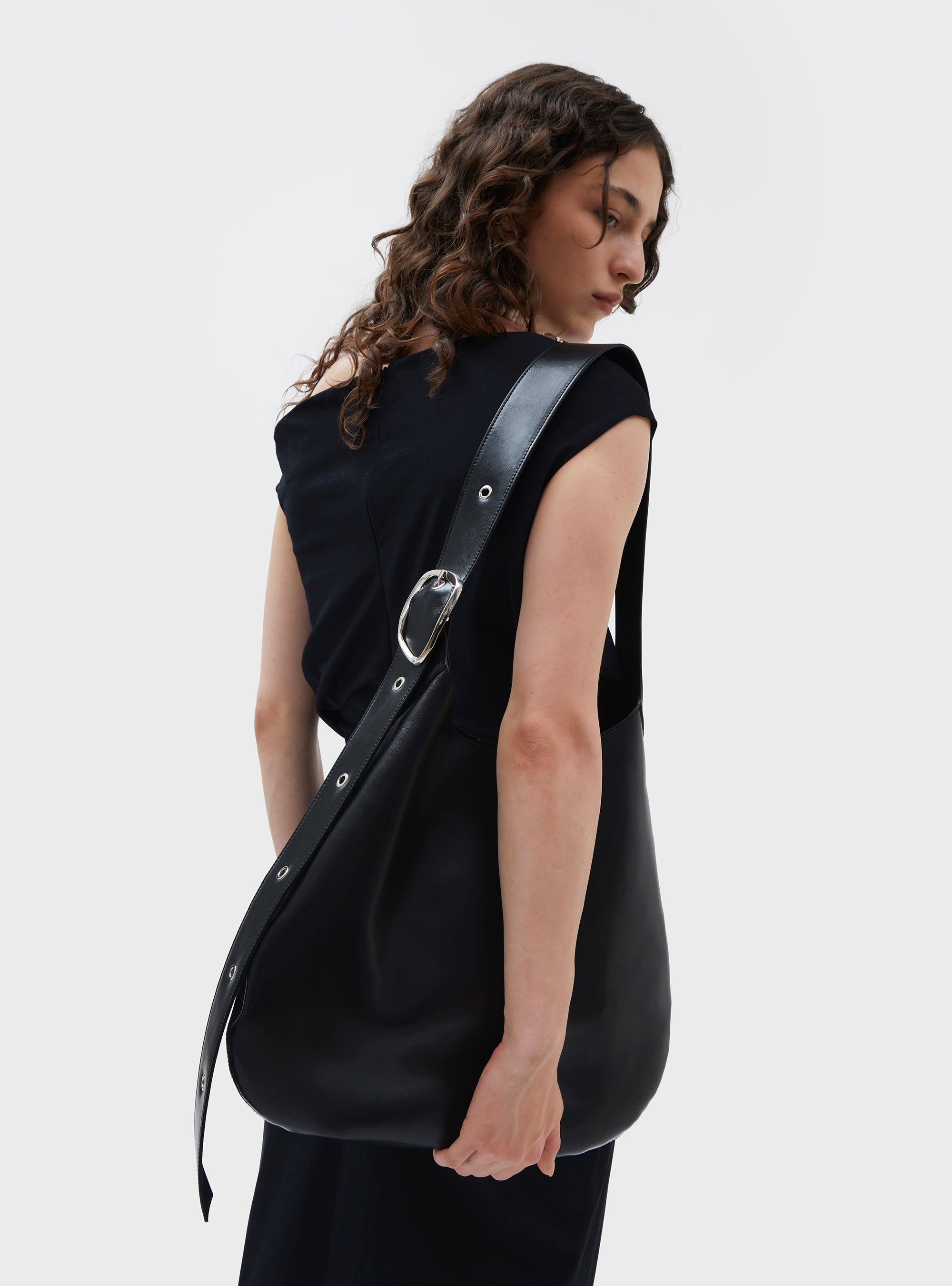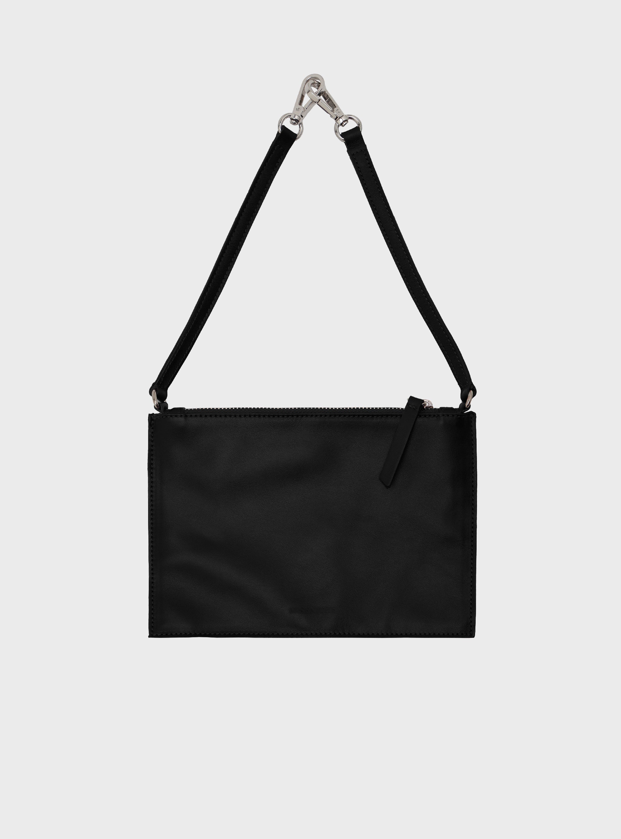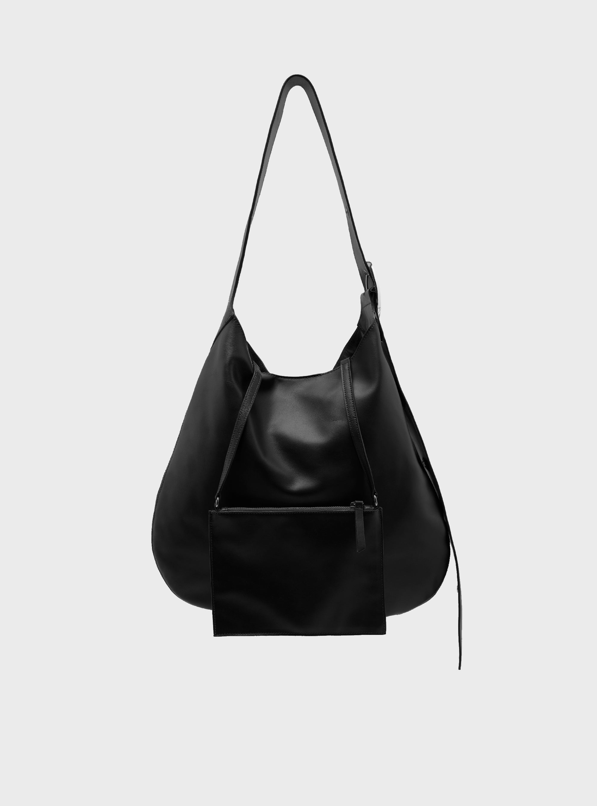 Borsa grande in pelle di vitello nera. Pochette interna staccabile e utilizzabile singolarmente.