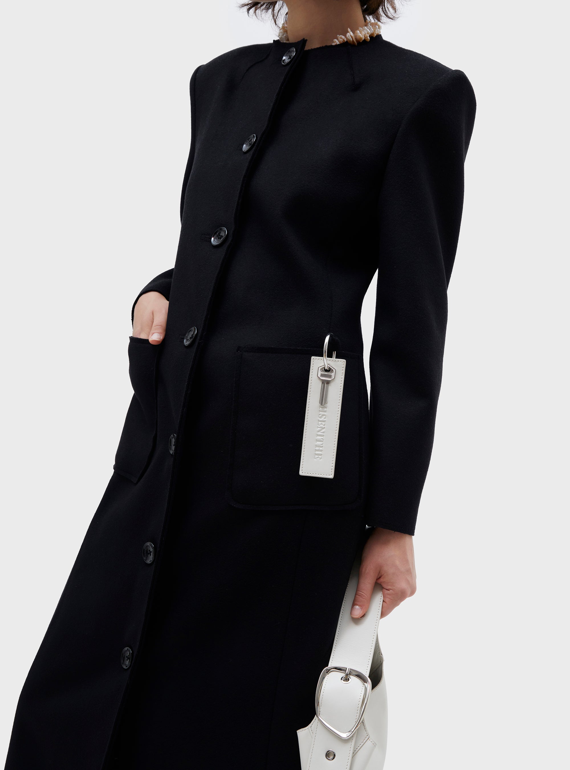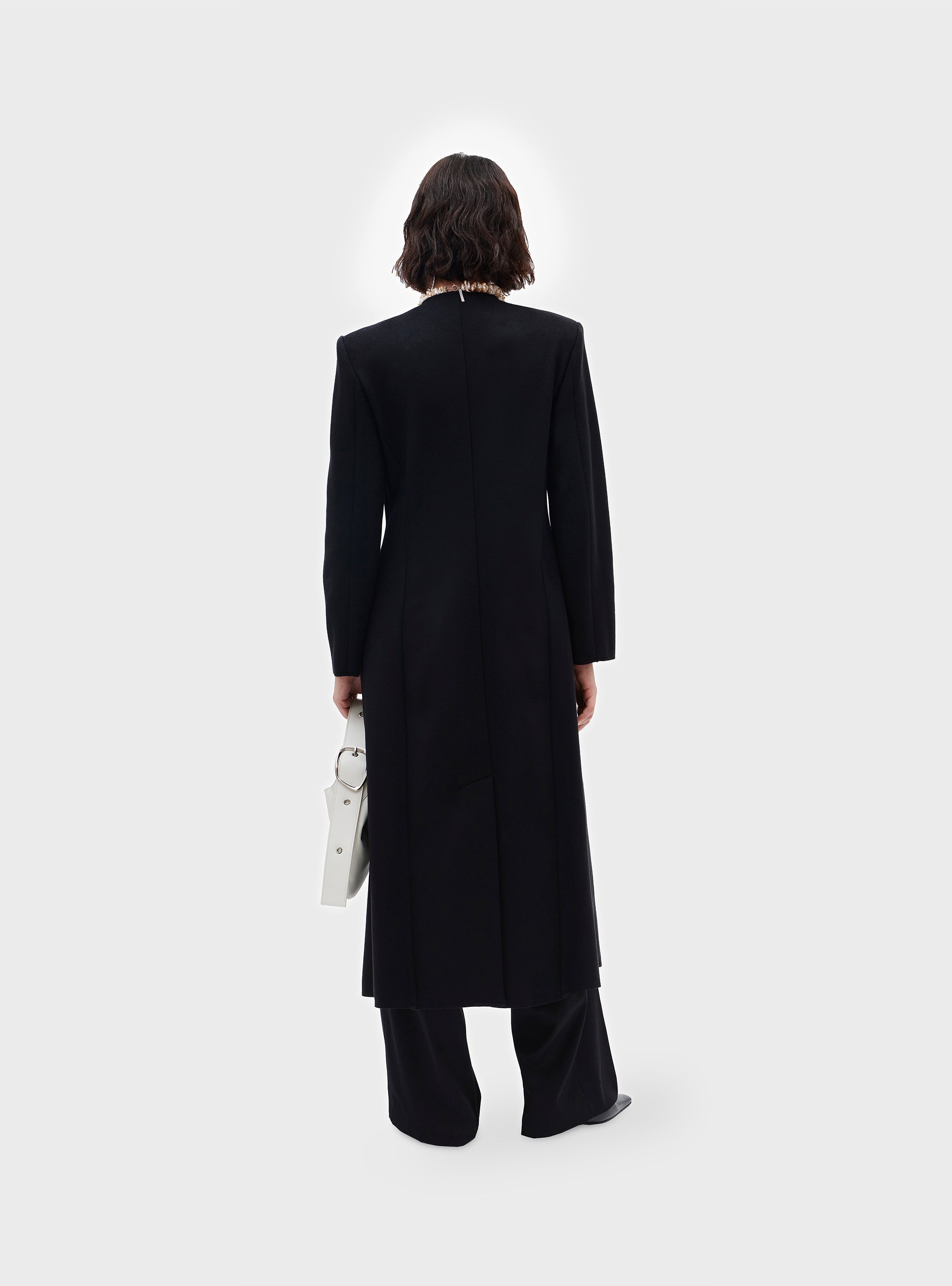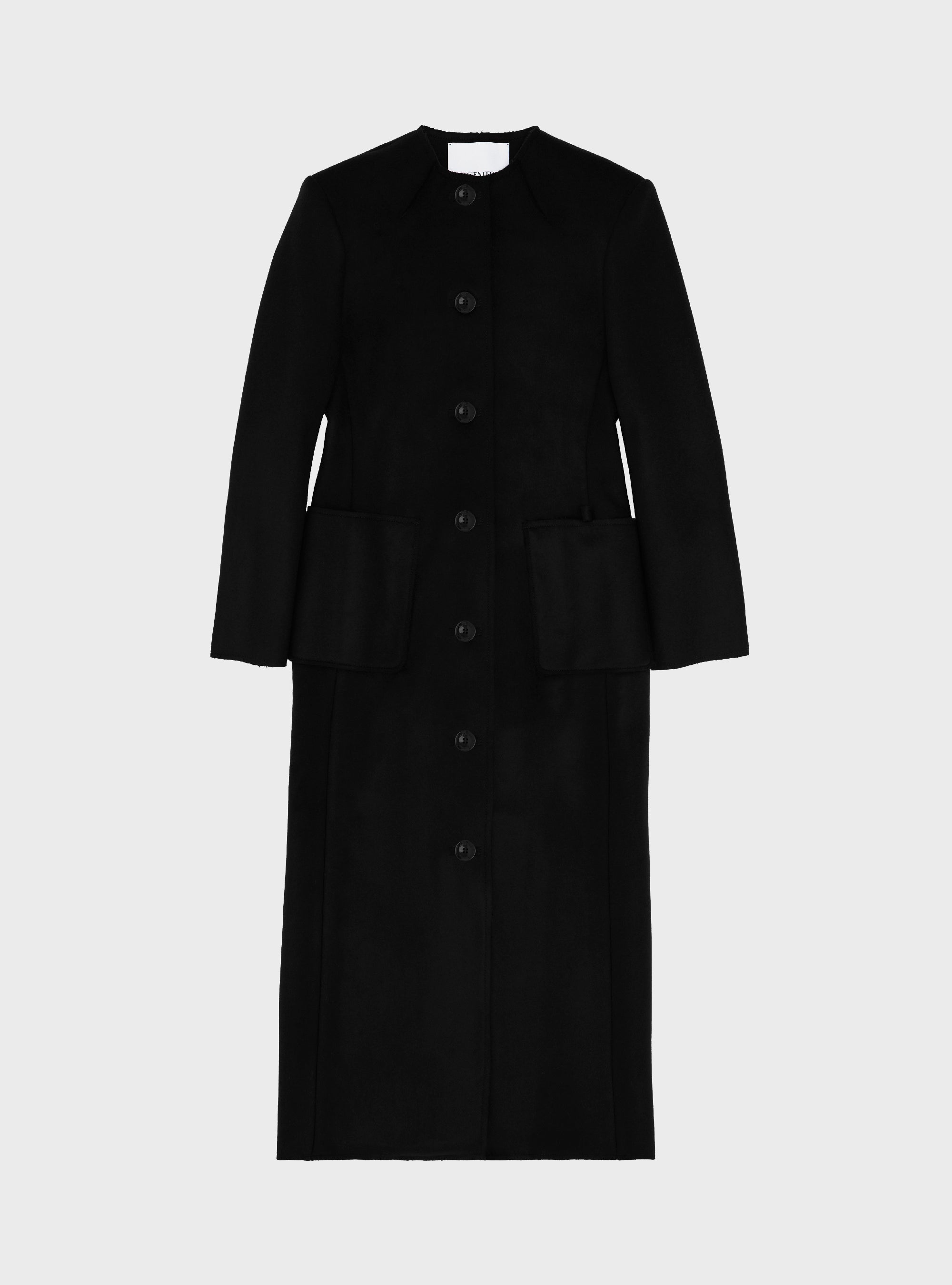 Cappotto taglio sartoriale in lana. Con spalla leggermente strutturata e girovita sagomato. Il cappotto è sfoderato. Tagliato a vivo con impunture visibili. Tasche patch sul davanti, e tasca interna. Il misto lana ha una texture sottile, compatta e confortevole.