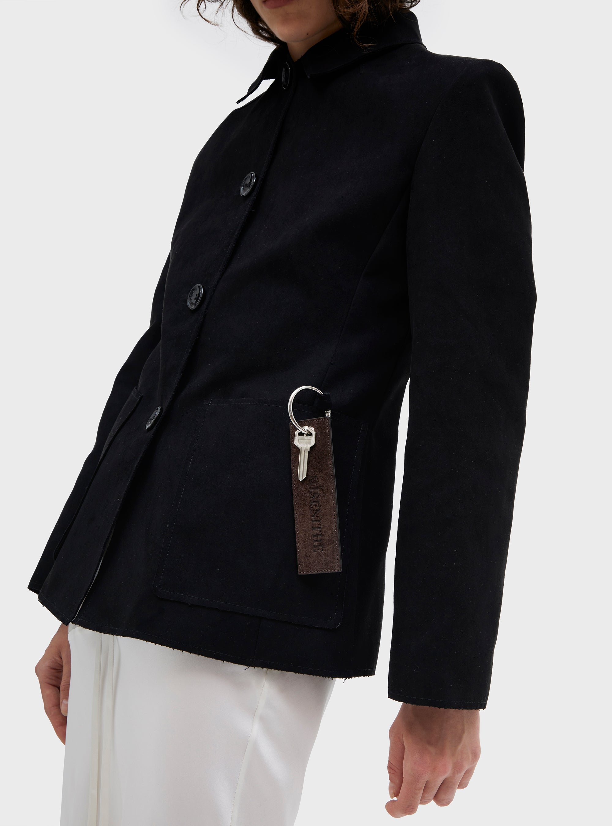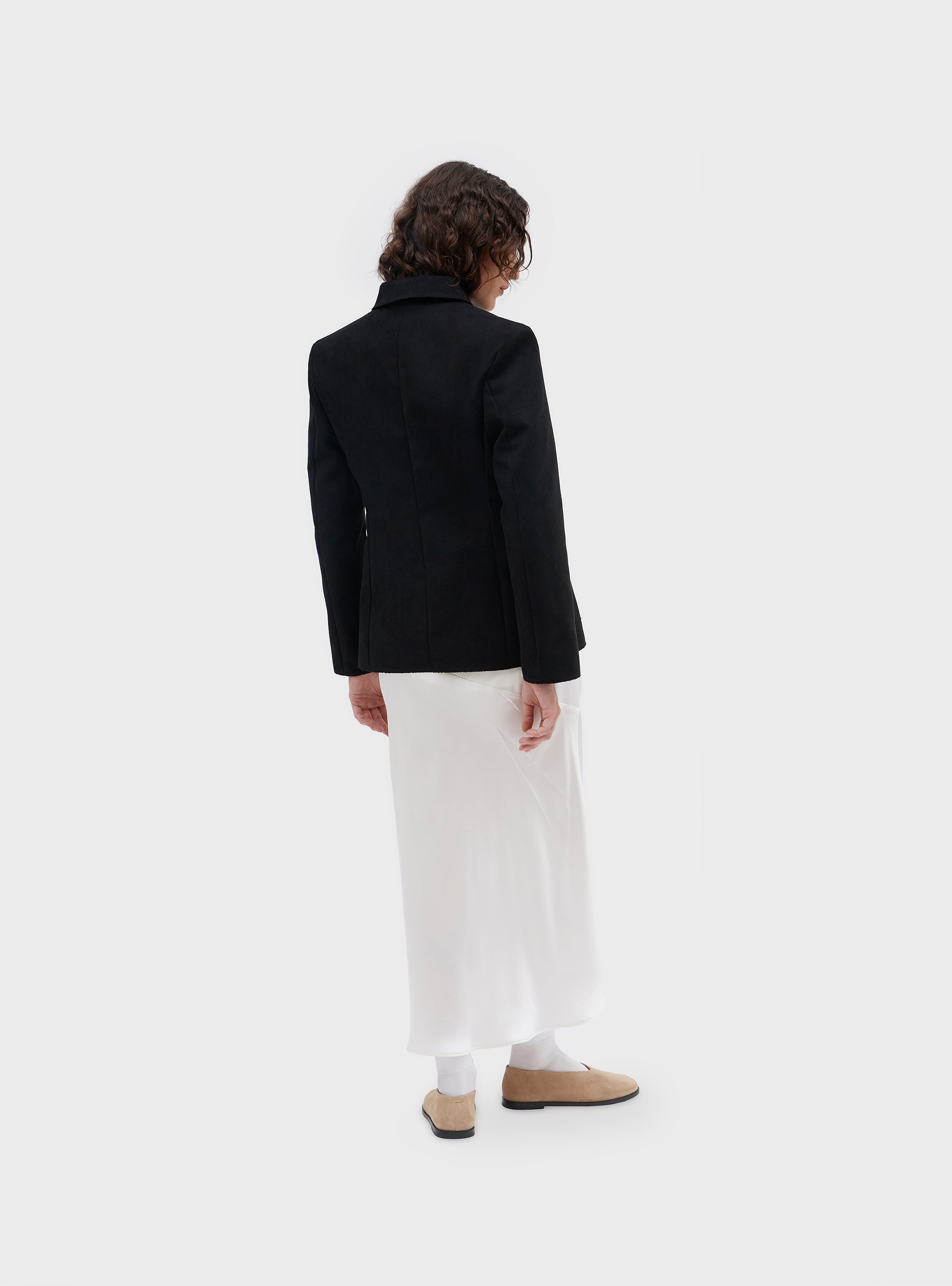 Giacca taglio sartoriale in alcantara. Con spalla leggermente strutturata e girovita sagomato. La giacca è foderata. Impunture visibili. Tasche patch sul davanti, e tasca interna. L'alcantara dona al capo una mano vellutata.