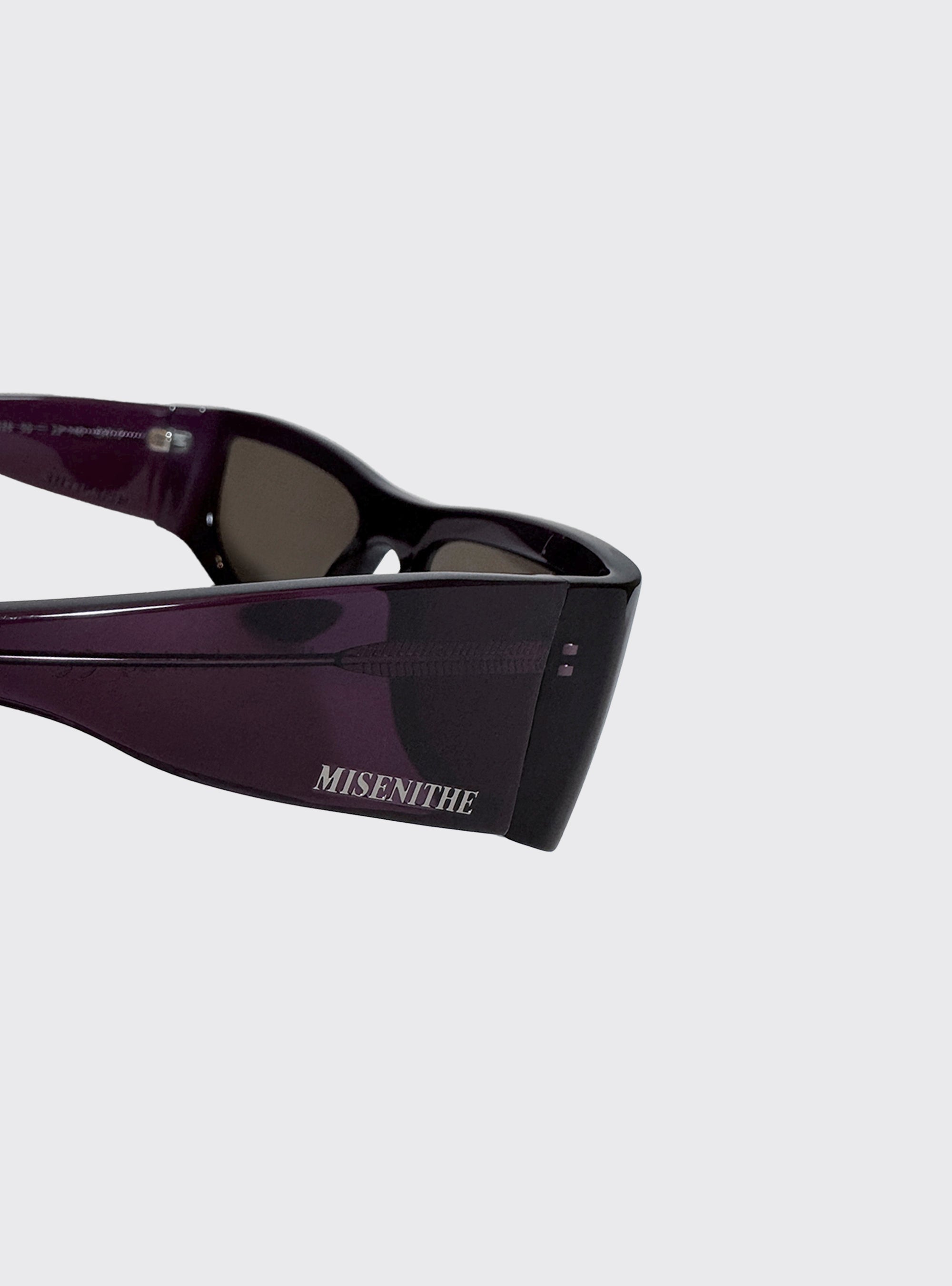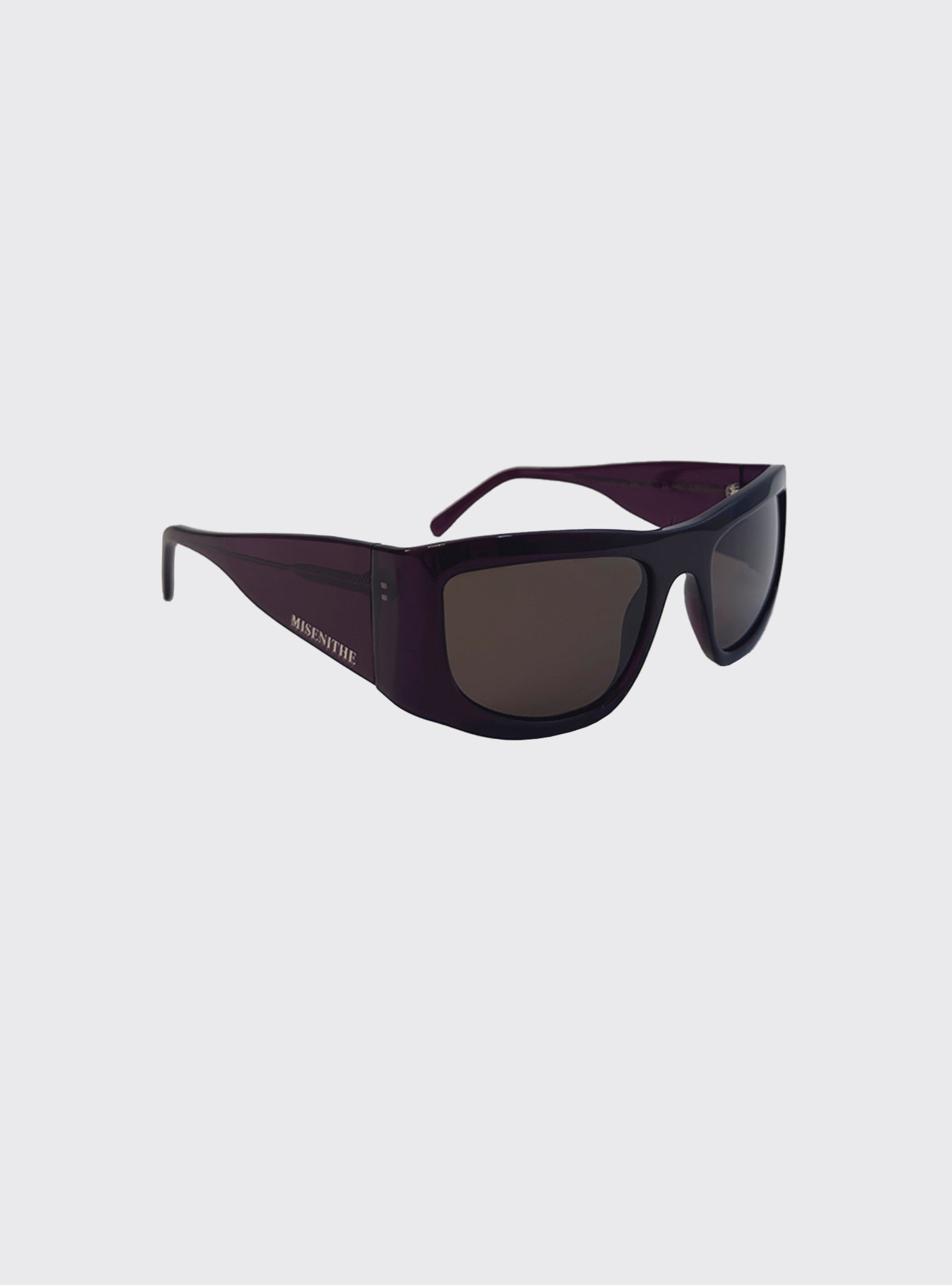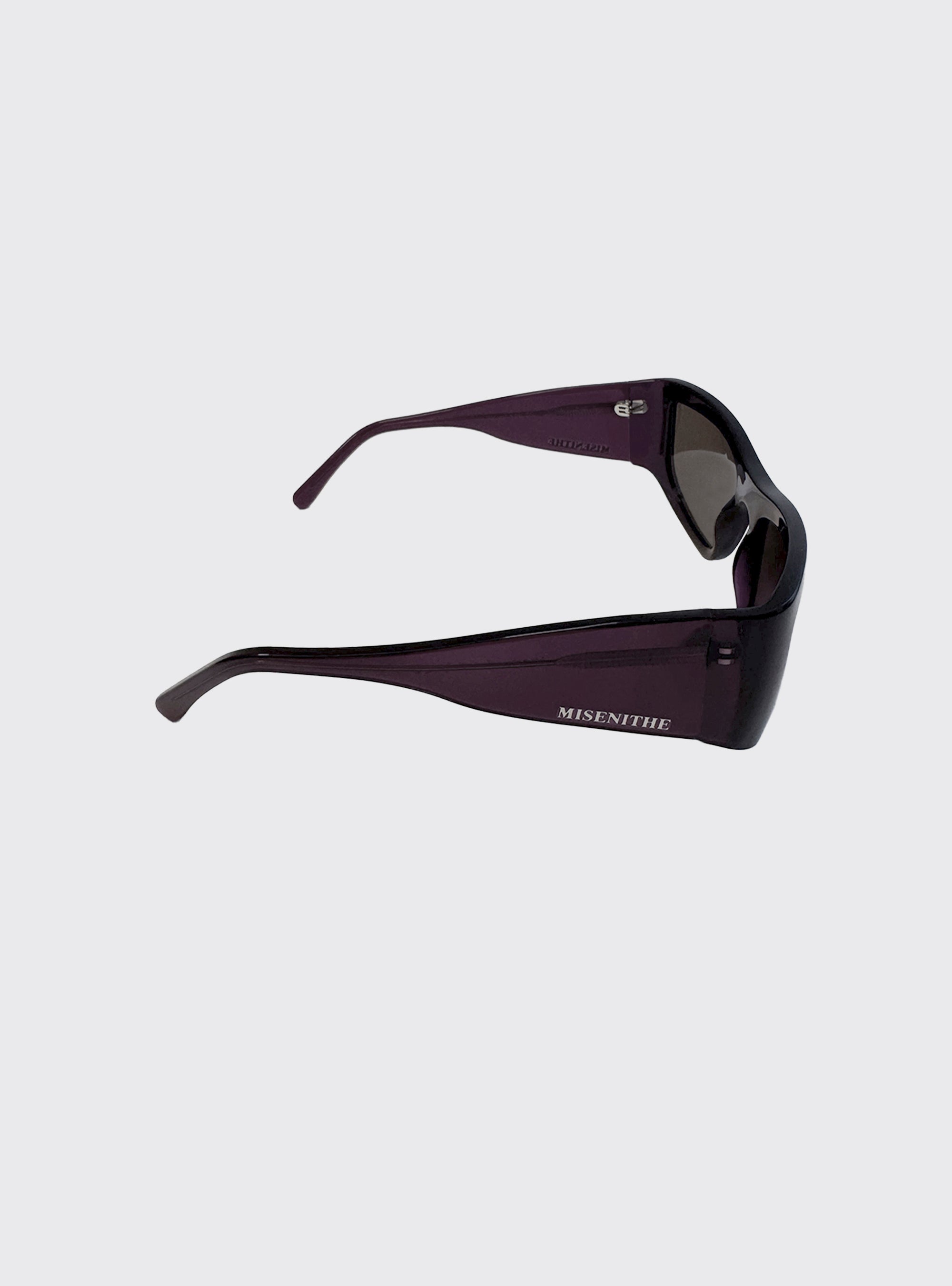 Occhiali da sole Luna in acetato prugna semitrasparente. Lenti marroni. Logo silver.